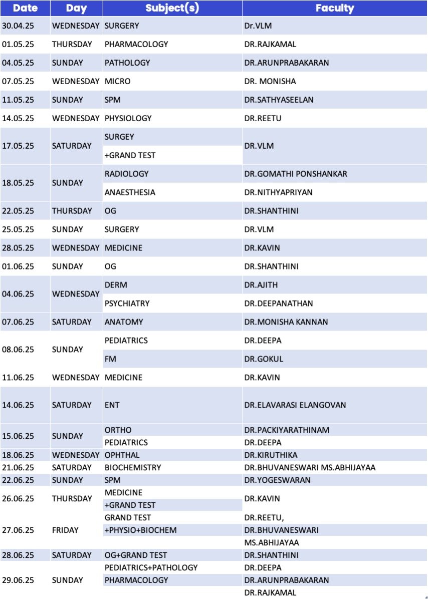 This year, we bring you a comprehensive 65-day regular course followed by a 20-day batch-wise rapid revision, all designed to give you the edge you need for the January 2026 FMGE. Our classes are powered by experienced faculty, subject-wise tests, grand tests, daily MCQs, and high-yield notes — all accessible online, wherever you are.